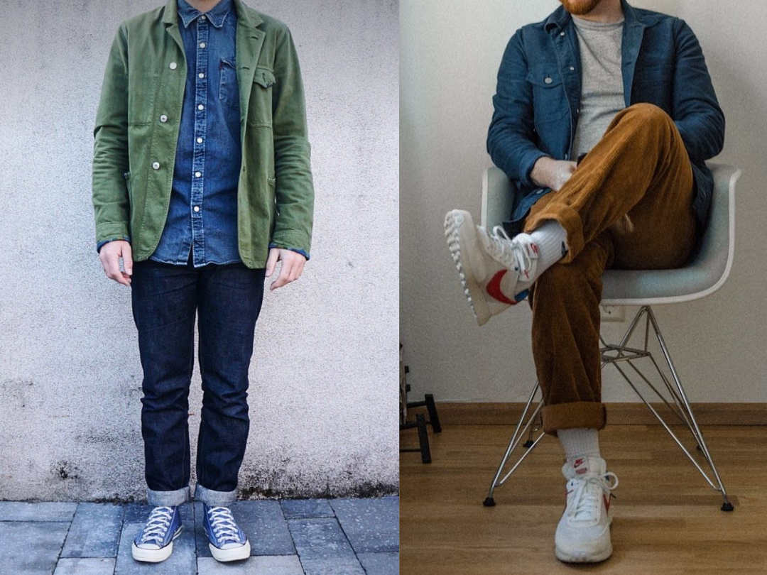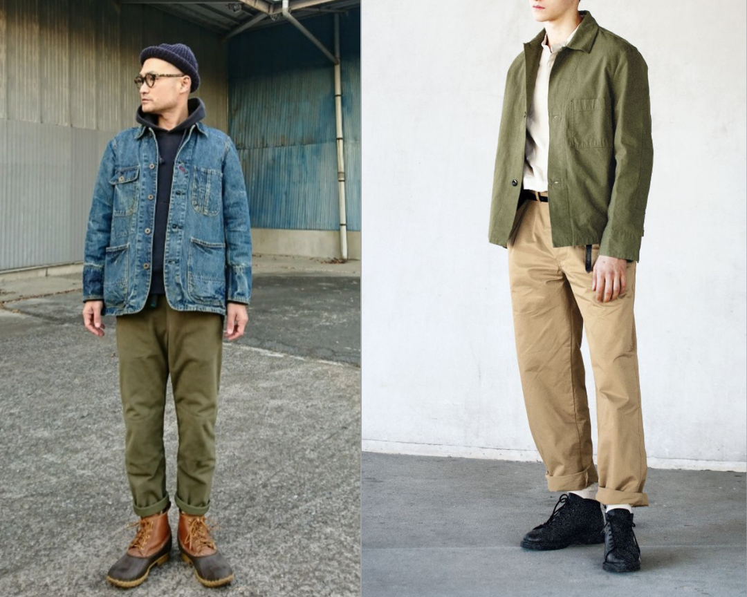 配色是打造工裝風的基礎,而最經典的工装色系就是綠藍棕,再加上黑白灰三種中性輔助色,就可以完成工裝的配色了。