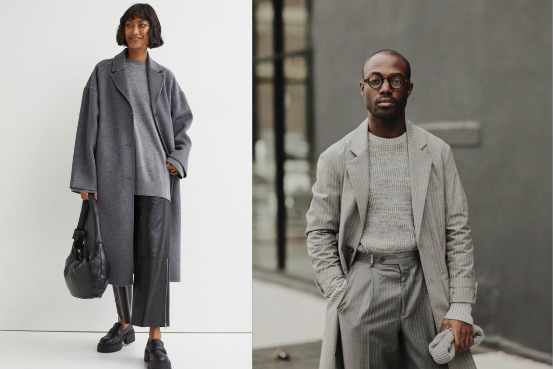 例如外套和內搭選擇不同色調的灰來做搭配,視覺上層次感也會更加豐富!